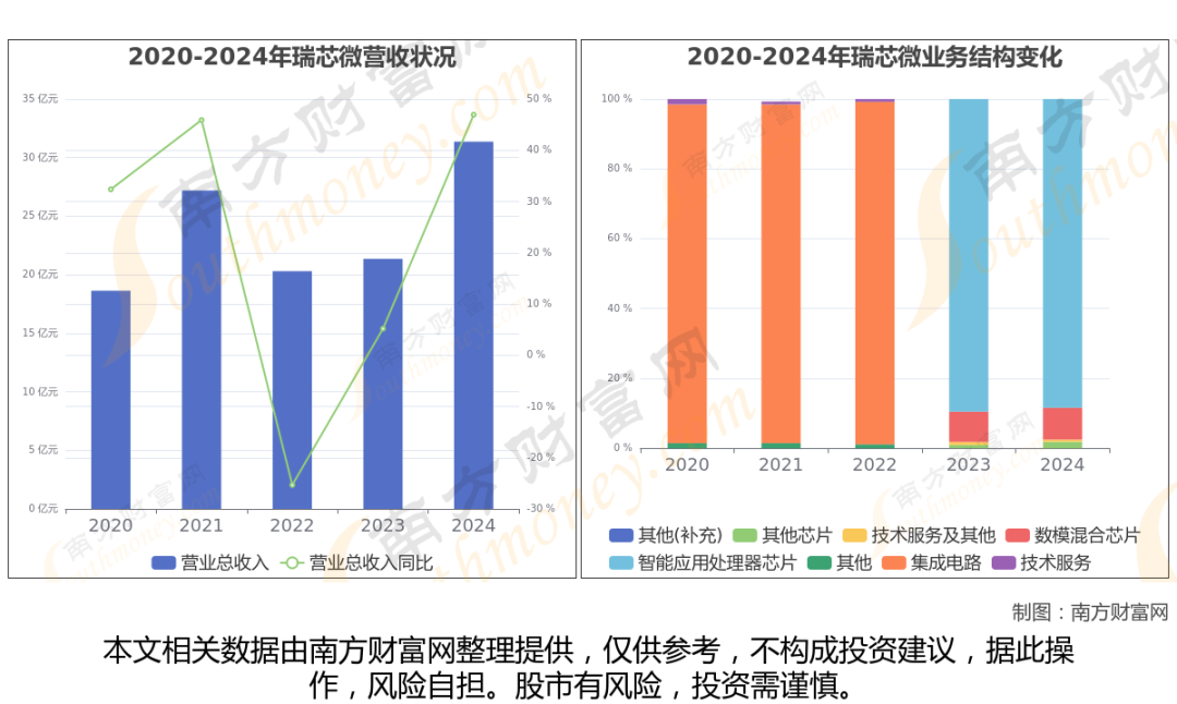 瑞芯微2024年数据显示(如上图),公司2024年营业收入31.36亿,同比增长46.94%,近五年复合年增长率13.9%。