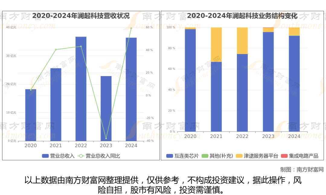 数据显示(如上图),澜起科技2024年营业收入为36.39亿,同比增长59.2%,近5年复合年增长率18.85%。