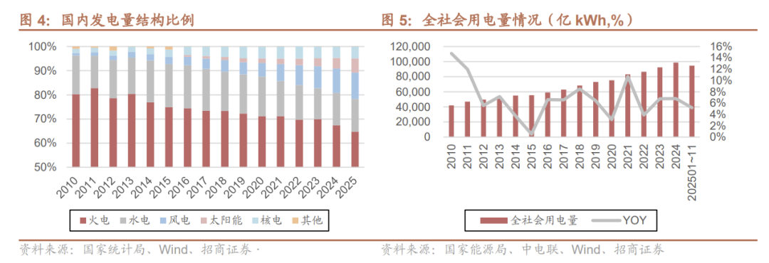 需求侧:刚性增长,负荷更复杂。截至2025年11月全社会用电量9.46万亿千瓦时,同比增长5.2%。25年新能源车渗透率已突破50%,重卡等大电量商用车渗透率已接近30%;AI产业技术不断突破,海外与国内都已经开始大力度的资产开支,未来可能会带来体量不小的用电量增长。同时,电动汽车充电负荷的峰谷差效应、AI算力中心的高能耗特性,使得负荷侧特性更加复杂。