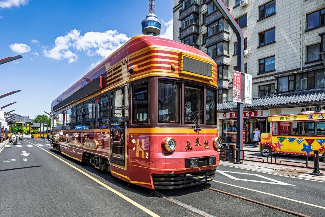 氢能源有轨电车“氢春号”亮相吉林长春红旗街。