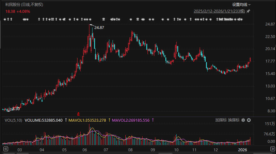 利民股份(002734)21日发布业绩预告,预计2025年归母净利润为4.65亿元—5亿元,同比增长471.55%—514.57%。公司净利同比增长的主要原因是公司主要产品销量和价格同比上涨、毛利率提升以及参股公司业绩上涨带来投资收益增加。