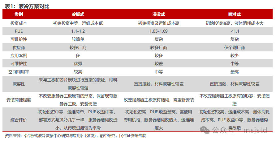 2.2.1 液冷方案:冷板式方案具有成本优势更为普及