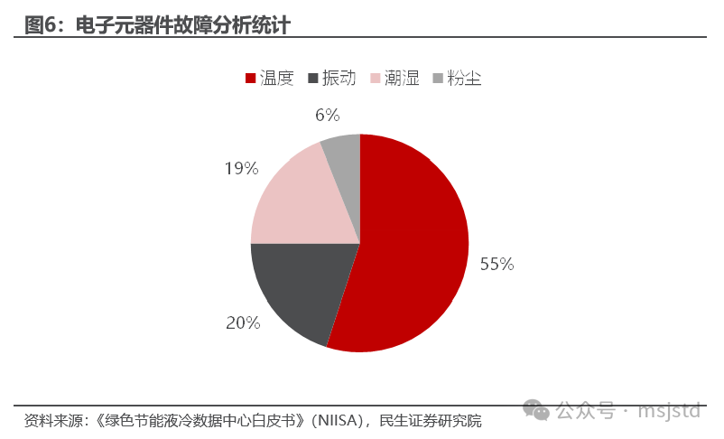 过高的温度会直接影响电子元件的性能,散热需求不可忽视。电子元器件使用故障中,有半数以上是由于温度过高引起的。半导体元器件温度每升高10℃,反向漏电流将增加1倍。此外,在高温的环境下,机件材料、导线绝缘保护层、防水密封胶更容易老化,造成安全隐患。对于大量数据中心,由于电子设备集中部署,这种由于过热造成的安全隐患更值得注意,尤其对于在高温下易燃易爆的设备,更易引起火灾等安全事故,引发数据中心瘫痪。另外,大电流的持续作用,还会降低服务器内部电子部件的使用寿命。尤其在高温的环境下,电子产品产生的热量得不到及时疏散,造成了电子产品工作温度升高。电容温度每升高10℃,平均电子元器件的寿命会降低一半,且更容易造成击穿。在这种重负荷状态下工作,会加大电子部件的消耗,从而降低服务器的使用寿命。因此,对服务器尤其是对关键电子部件的散热冷却提出了更加严格的要求。