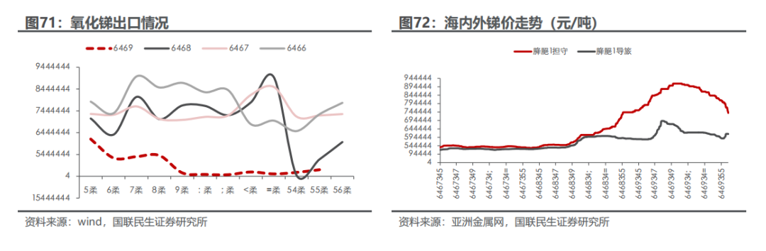 ◾ 锑:供给刚性,出口管制放开利好内外价差收窄。受制于新矿山投产少、旧矿山产量下滑锑供给难有增量;需求侧目前整体较为平稳,锑供需维持偏紧格局;国内暂时放开出口管制利好出口需求修复,内外价差有望收窄。