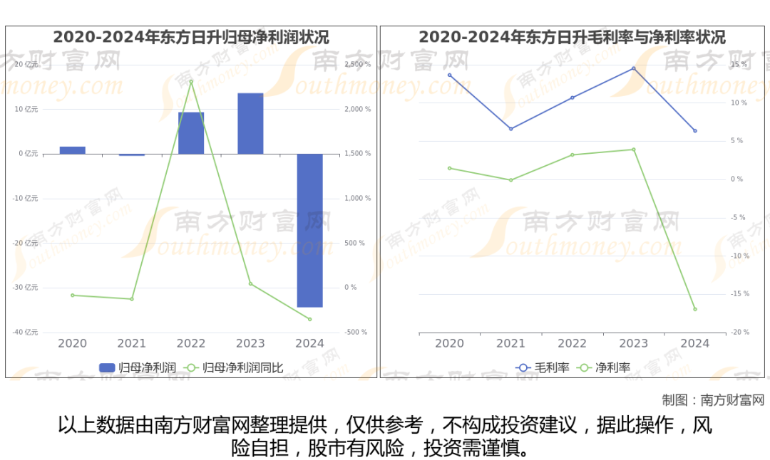 据东方日升2024年全年业绩显示(如上图),公司营业收入为202.39亿,同比增长-42.71%,近5年复合年增长率5.95%。