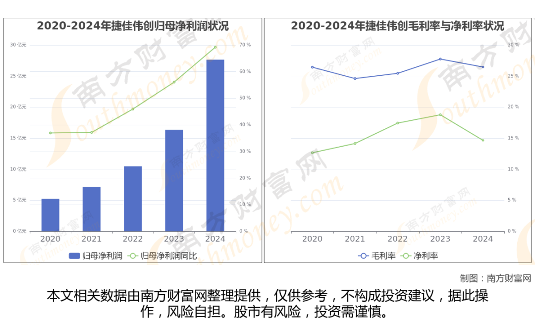 2024年公司归母净利润27.64亿元,同比增长69.18%。净利润27.64亿,近5年复合年增长率51.61%;净利率14.65%,近5年复合年增长率3.74%;毛利率26.46%,近5年复合年增长率0.03%。