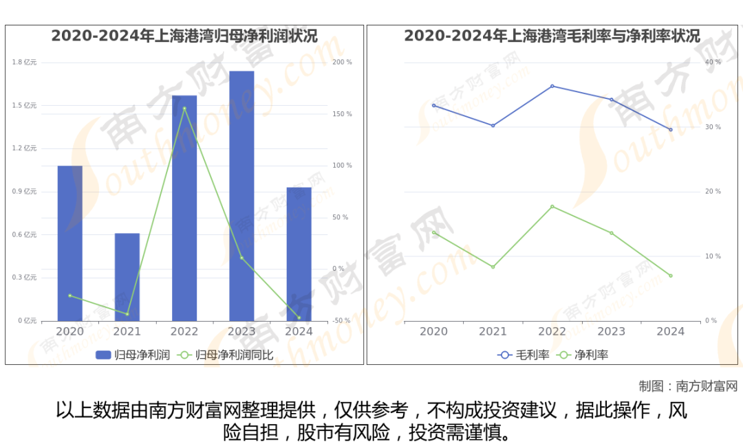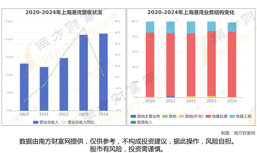 数据显示(如上图),上海港湾公司2024年营业收入12.97亿,同比增长1.51%,近5年复合年增长率(CAGR)13.11%。