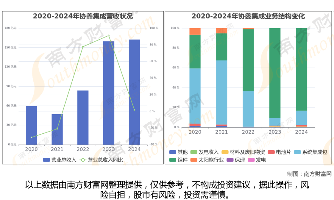 (如上图)2024年协鑫集成公司营业总收入为162.4亿,同比增长1.7%,近5年复合增长率为28.5%。
