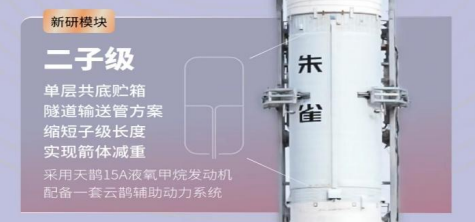 天鹊-15B是蓝箭航天自主研制液氧甲烷火箭发动机,单机真空推 力1183kN,真空比冲3500m/s。