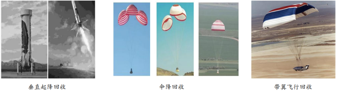 目前火箭回收总共有三种方式,分别是伞降回收、飞行式回收以及垂直返回。对于主流的三种火箭回收方式,国内外均有所进展。相比于其他回收方式,垂直起降回收着陆精度高、着陆冲击小,能实现发动机等核心部件在内的箭体整体无损伤回收,而且其对地面场地及保障要求低、运载效率影响小,技术难度也较低,是当前火箭回收的最主流方式。