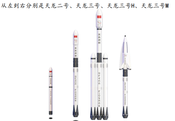 天兵科技是我国商业航天领域领先开展新一代液体火箭发动机及中大型液体运载火箭研制的高新技术企业。该公司旗下主力火箭为天龙系列,其中天龙二号为中国民营航天中首枚成功入轨的液体运载火箭,采用液氧/煤油推进, 定位小型、低成本发射,验证了民营液体火箭工程化能力。天龙三号为中大型液体运载火箭,一子级多机并联、面向部分可重复使用,目标服务卫星互联网与高频次商业发射。天龙三号H为天龙三号的重型/高推力衍生型,定位更大运力与更强复用能力。天龙三号M为天龙三号的中型改型构型,强调成本与运力平衡,面向中等规模星座与更高发射频次。其参数以及模型图如下所示: