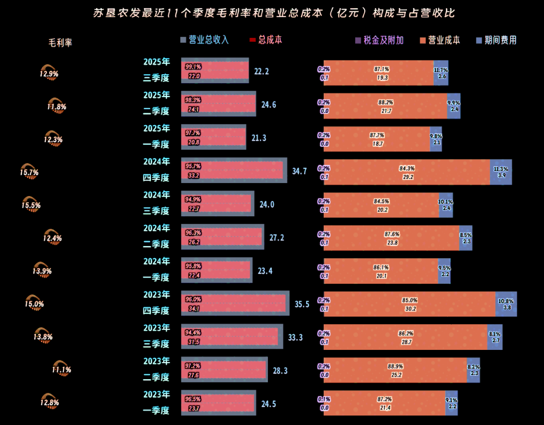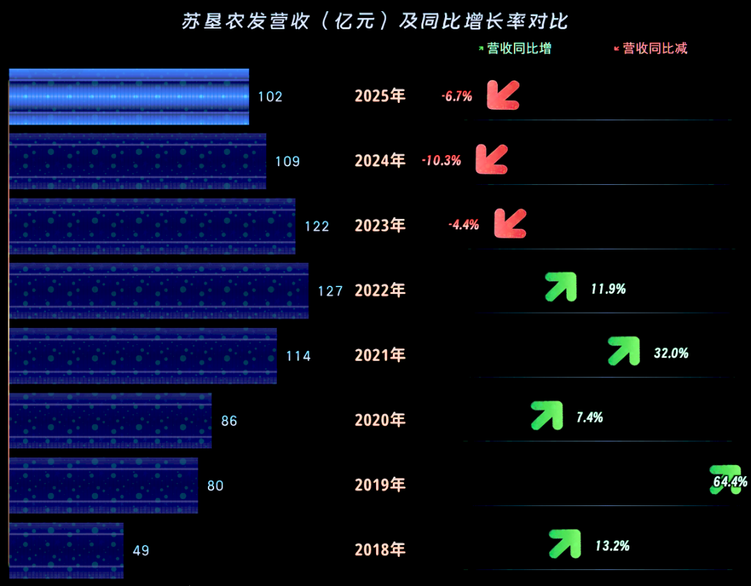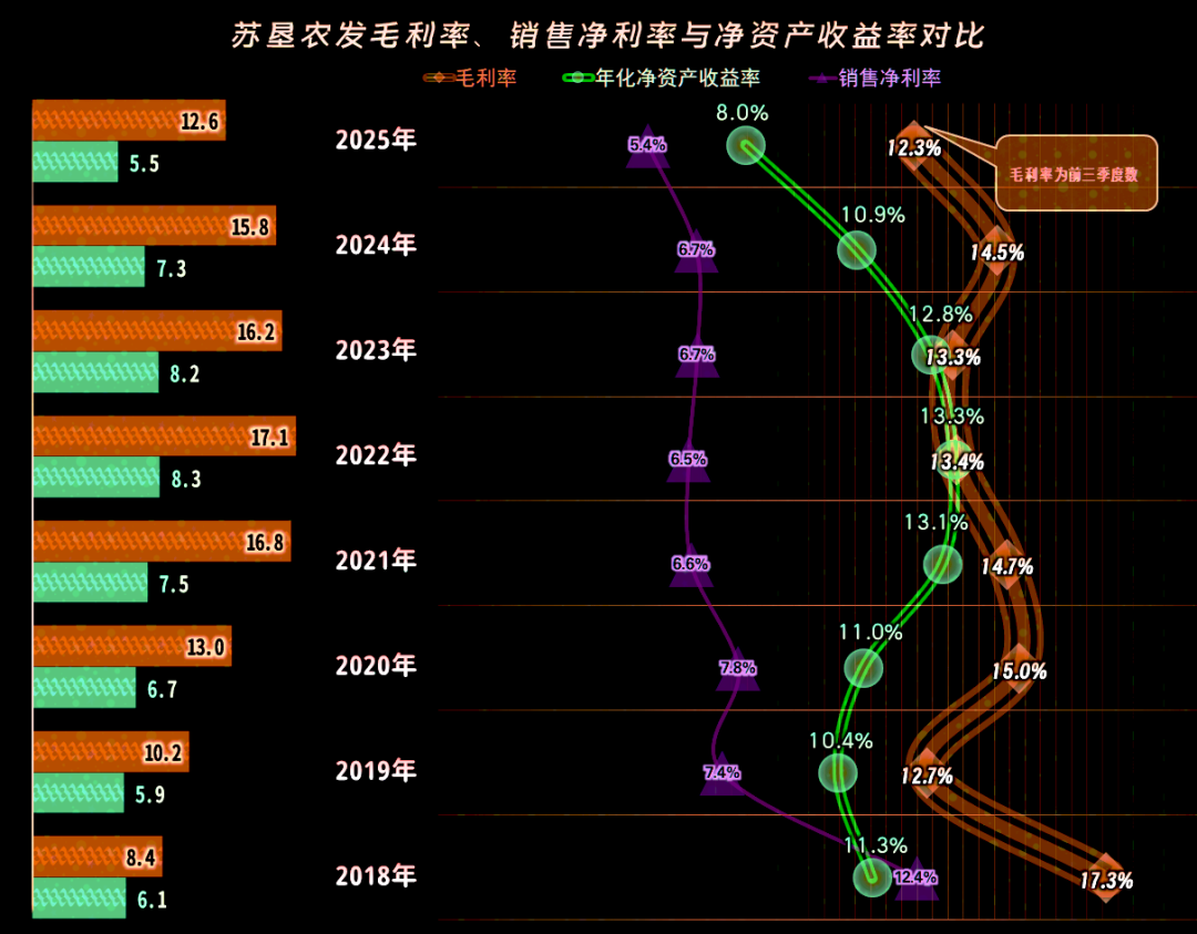 苏垦农发2025年维持了连续第三年的双下跌状态,但仍然还是优秀级的盈利水平。也有各种迹象显示可能快到本轮下跌期的支撑点了,但市场的变化很快,还要看他们在2026年怎么去应对。
