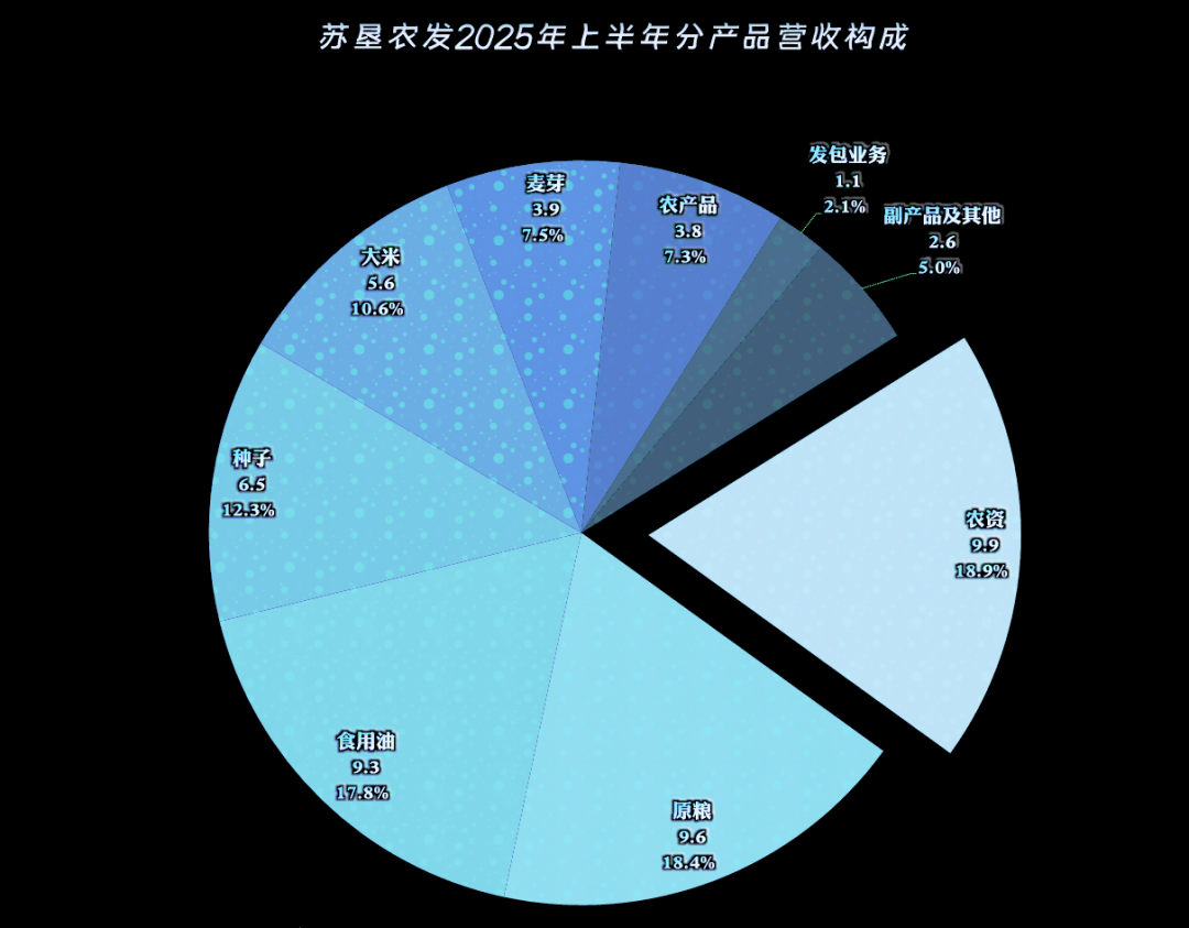 第一大业务仍是农资,但原粮从2024年上半年的第四位升至第二位,食用油下滑至第三位,种子超过大米成为第四大业务,还单列了麦牙等业务。看起来营收的波动不算太大,但其结构的变化并不小。