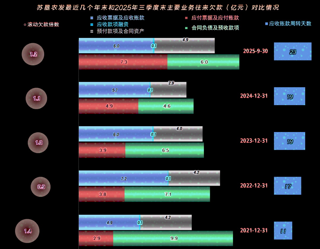 应收项目前两年末确实有所下降,回收了部分营运资金,但应付项目也在下降,抵消掉了一部分;2025年三季度末的情况又有所变化,应收和应付项目都在增长。