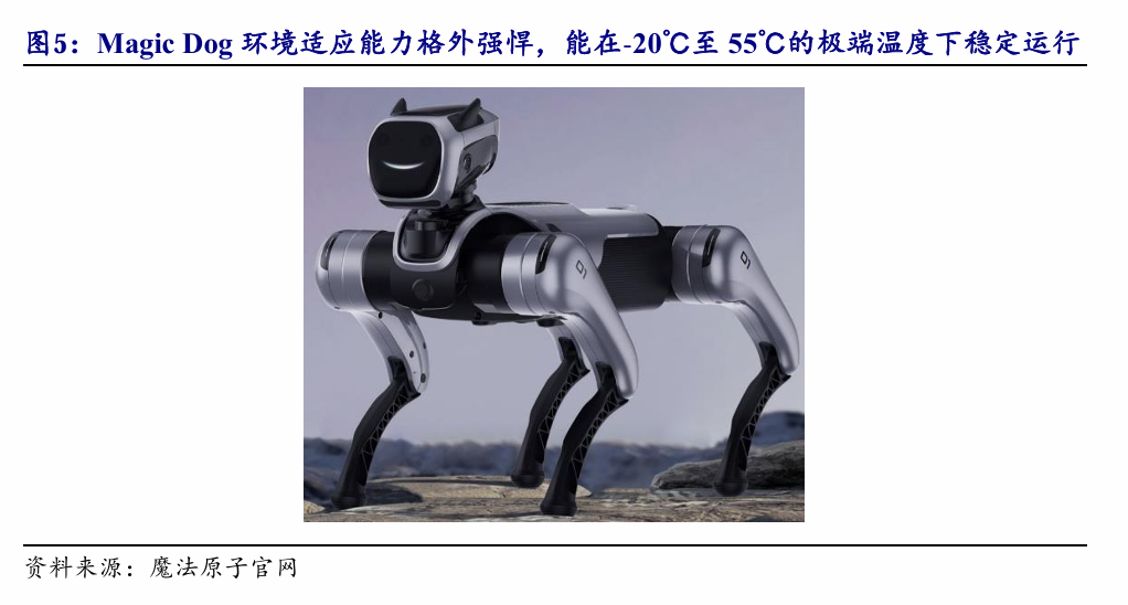 Magic Dog被誉为“科技萌宠”,环境适应能力格外强悍,能在-20℃至55℃的极端温度下稳定运行。再加上厘米级定位与动态避障技术加持,它能在复杂舞台场景中灵活穿梭、跃动自如。不管是和真人演员协同表演,还是完成集群队形变换,Magic Dog都能靠高精度控制实现零失误呈现,尽显中国智造的可靠品质。