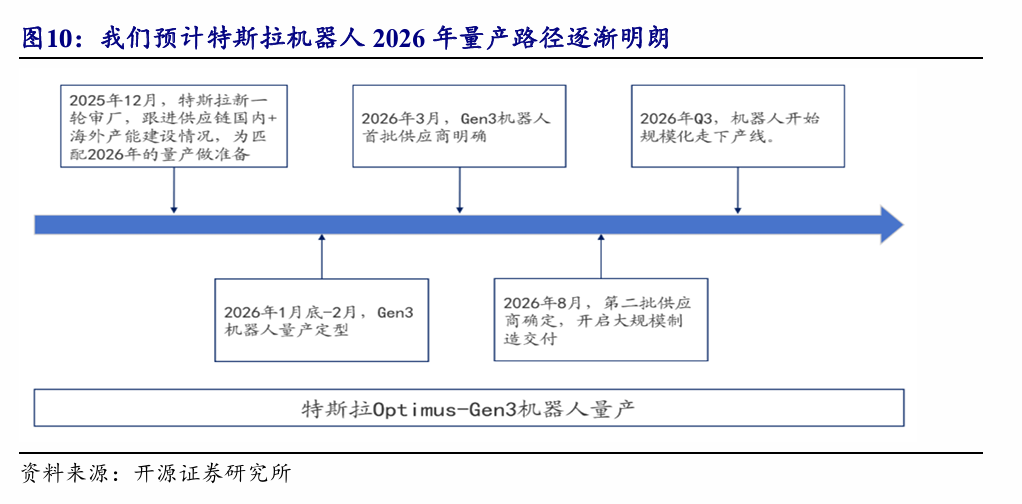 我们对后期节奏进行展望:2026年3月份开启批量订单,8月份开启大规模制造,在此期间推动核心供应链标准化和自动化量产产能建设。