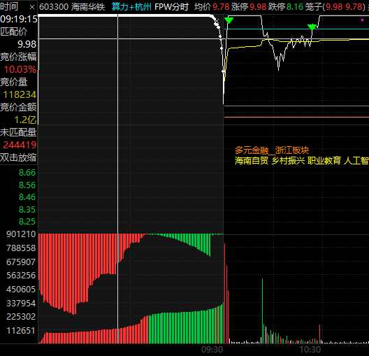 【海南华铁】杭州+算力,竞价爆量高开,而且辨识度不错,符合模式买点,日内+8%大肉,明日依旧有晋级的预期。