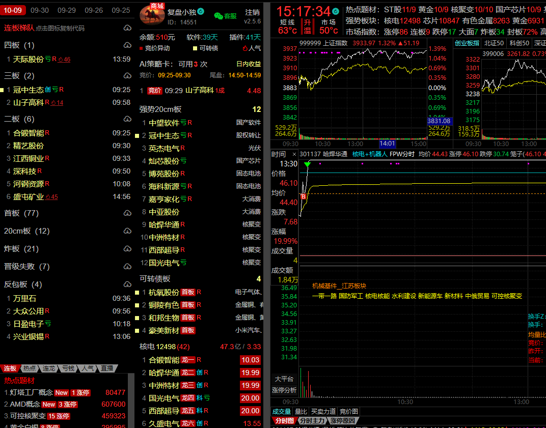 【哈瀚华通】核电20cm辨识标,竞价爆量大高开,开盘小幅分歧后,抢筹过左高后半路,日内+6.5%中肉,明日如果核电板块继续强势,有晋级2B的可能。