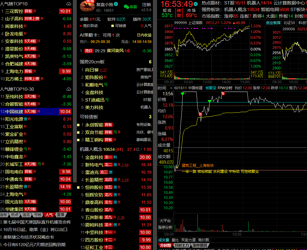 【中国核建】核聚变核心标,开盘后强势拉板,早盘情绪分歧炸板回落均线介入,板上回封加仓,目前是核聚变的核心标,明日如果核聚变修复,那么应该有晋级的预期。
