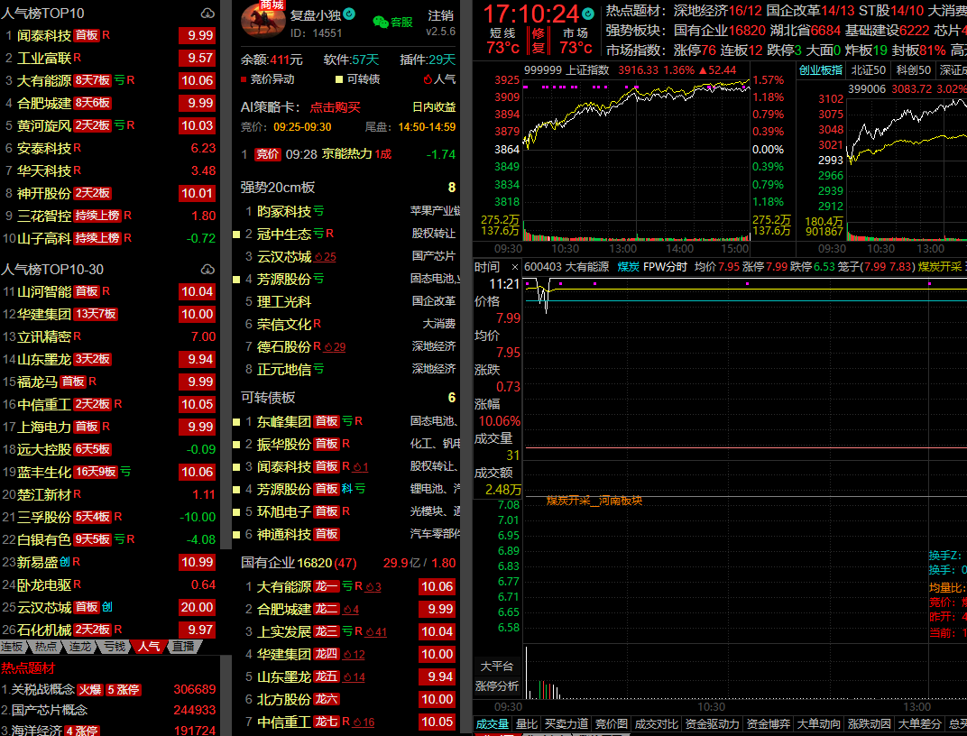 【大有能源】能源龙 + 总龙头,爆量回封排板,目前是6B,明日挑战蓝丰生化7B的高度,依旧有爆量晋级的预期,继续观察。