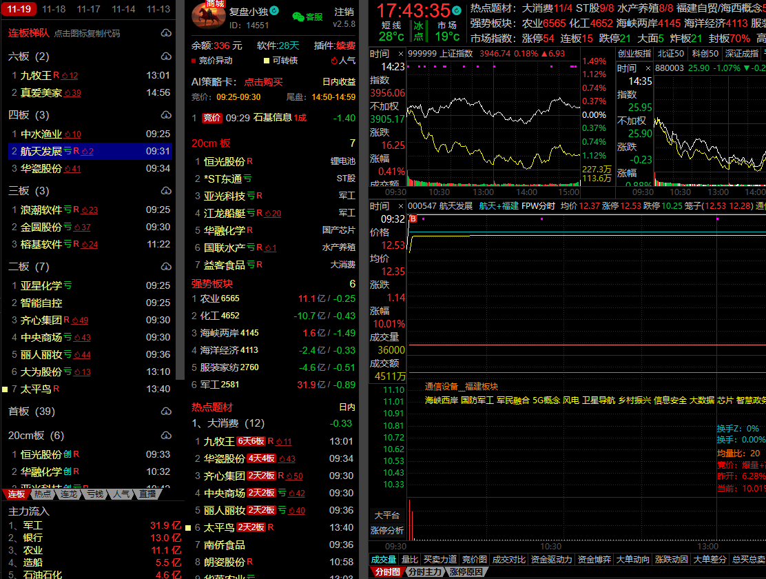 题材上,大消费、水产板块表现较为亮眼,主线福建板块继续分歧,而其他题材都不咋地,明日重点关注抗日(水产)、福建板块,其他题材一律不看。