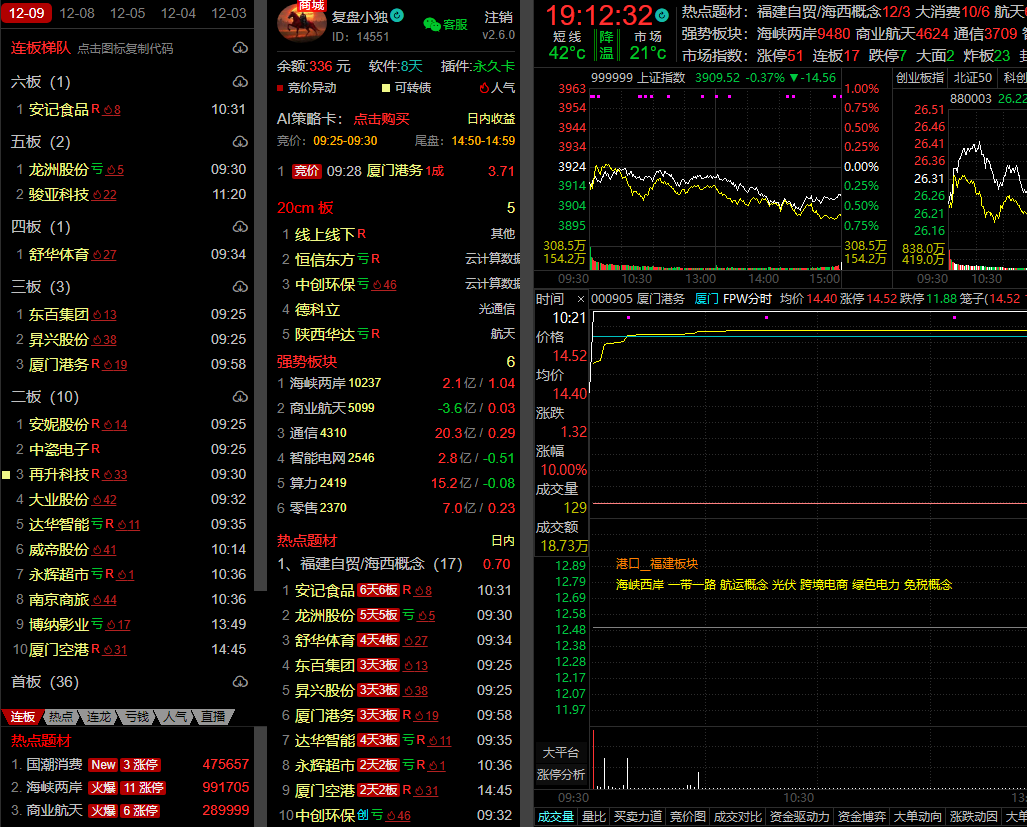【厦门港务】福建+厦门+竞价爆量高开+板块强势,符合模式买点,日内+3.7%小肉,明日依旧有高溢价预期。