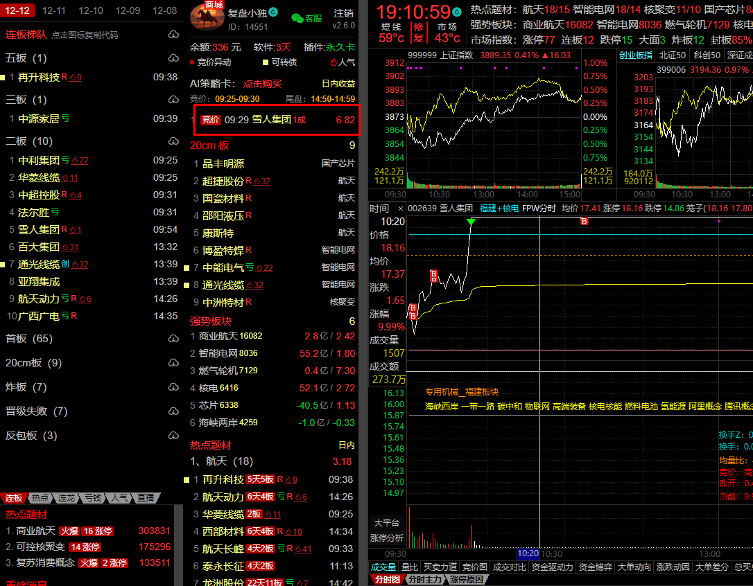 【雪人集团】福建补涨+核电+航天+竞价爆量高开+相对低位,符合模式买点,日内+6.8%中肉,目前是人气第一,明日超大单顶一字预期。