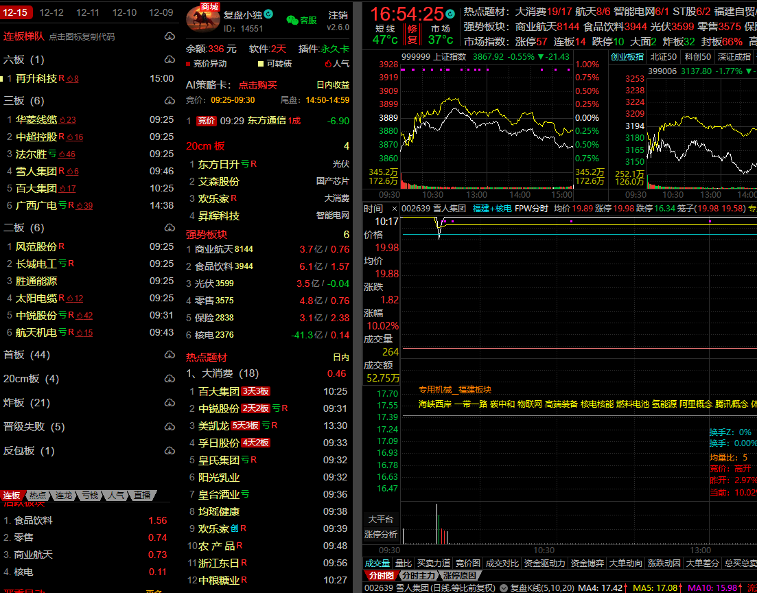 【雪人集团】福建+核电+航天+人气核心+3B,明日有继续晋级的预期。