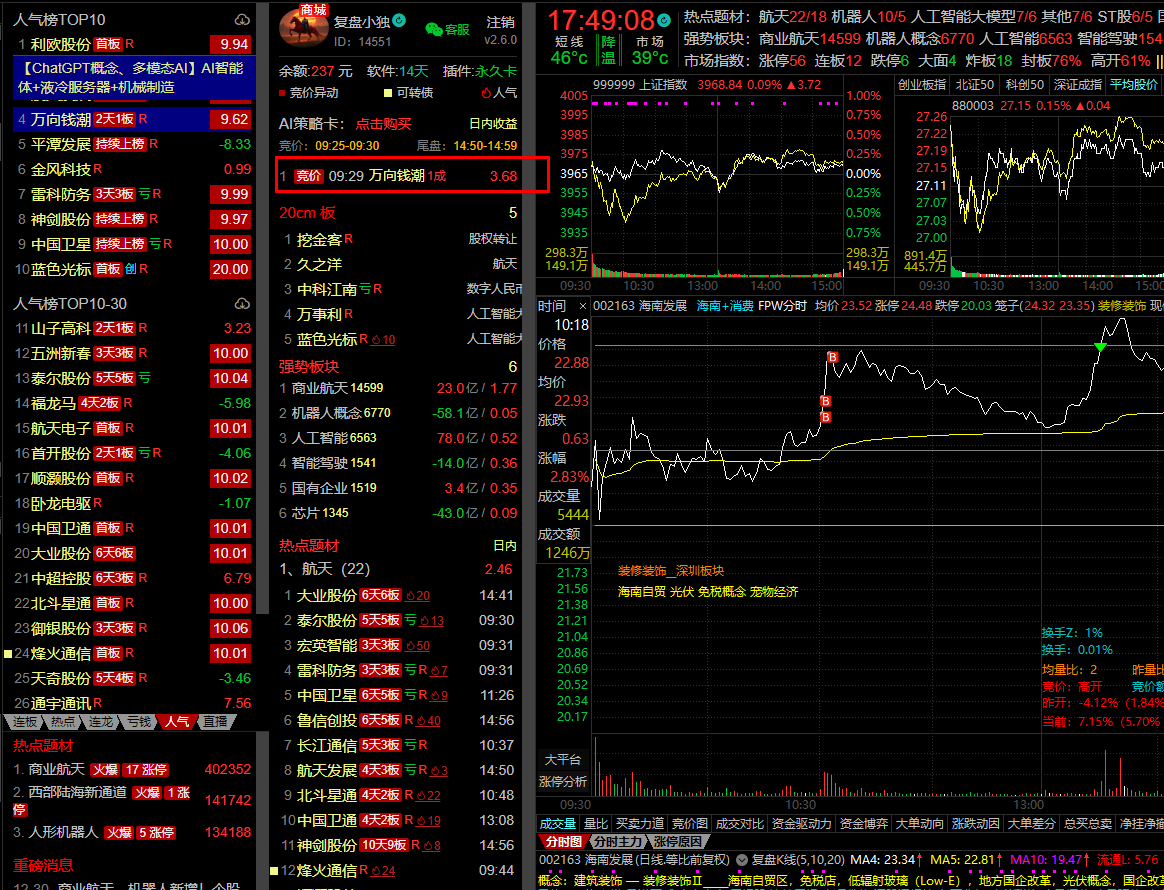 【雷科防务】航天+军工+人气核心+3B,竞价中开有点不及预期,但开盘能够秒板,排板后成交,明日继续晋级预期。
