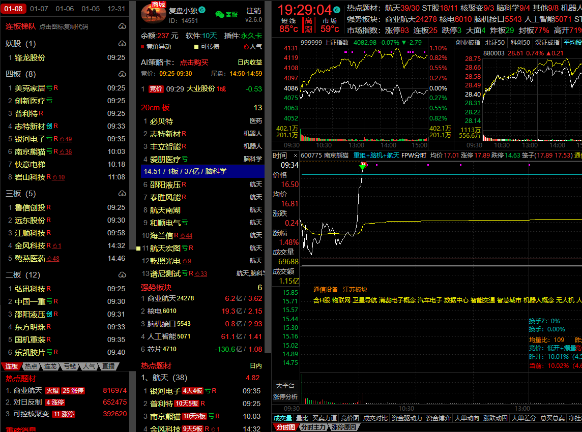 【南京熊猫】重组+脑机+航天+4B,爆量打板,明日如果能够弱转强,可继续加仓。