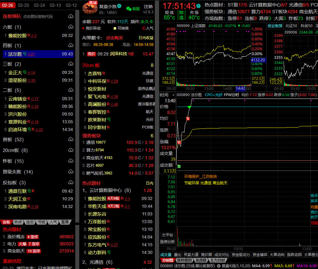 【法尔胜】CPO龙+中位+小票+4B,开盘弱转强强势晋级,带领板块情绪,可惜上面有豫能压制,明日能否卡位,有待观察。