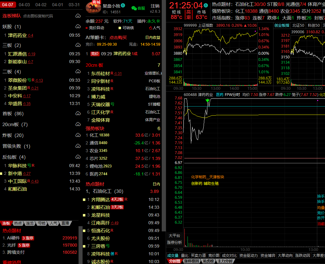【津药药业】医药龙+总龙头+7B,带领短线情绪高潮,明日有继续晋级预期。