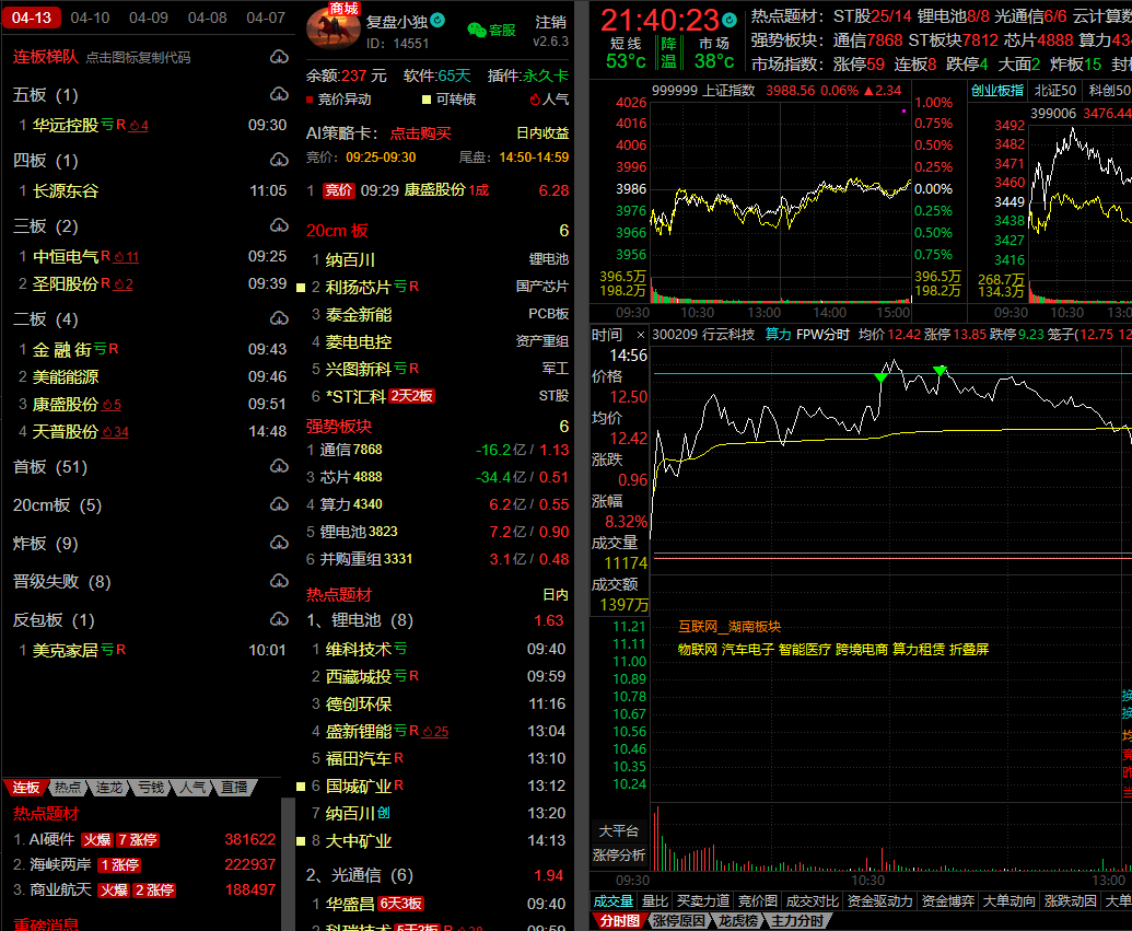 【行云科技】算力20cm强势标+开盘强势抢筹+爆量新高,上破左高半路介入,可惜冲高回落,日内-0.3%微面,继续观察。