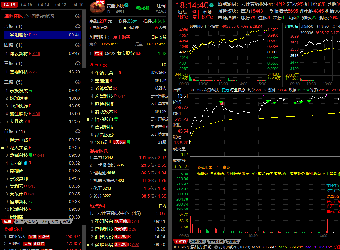 题材上,算力板块高潮,整个板块14家涨停,锂电、机器人、轮机都有不同程度的表现,那么接下来,继续重点关注算力相关的科技线即可。