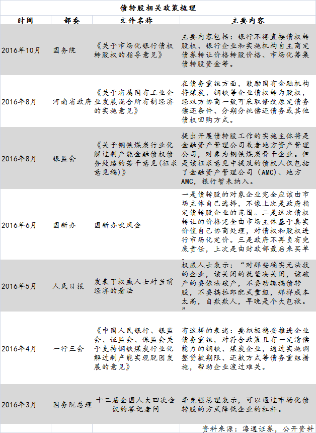 国务院10月10日发布《关于市场化银行债权转股权的指导意见》,推动债转股的实质性落地。《指导意见》是作为《国务院关于积极稳妥降低企业杠杆率的意见》(国发〔2016〕54号)的附件呈现在我们面前的。