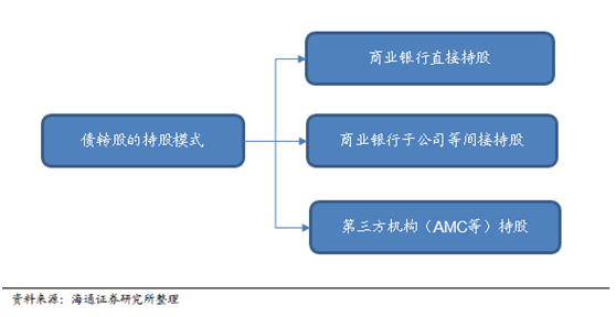《意见》规定,银行不能直接将债权转为股权,但存在两种间接参与方式。1)银行将向第三方转让债权、由第三方将债权转为对象企业股权的方式实现。第三方可以是金融资产管理公司(AMC)、保险资产管理机构、国有资本投资运营公司等多种类型。2)利用现有符合条件的所属机构,或允许申请设立符合规定的新机构开展市场化债转股。