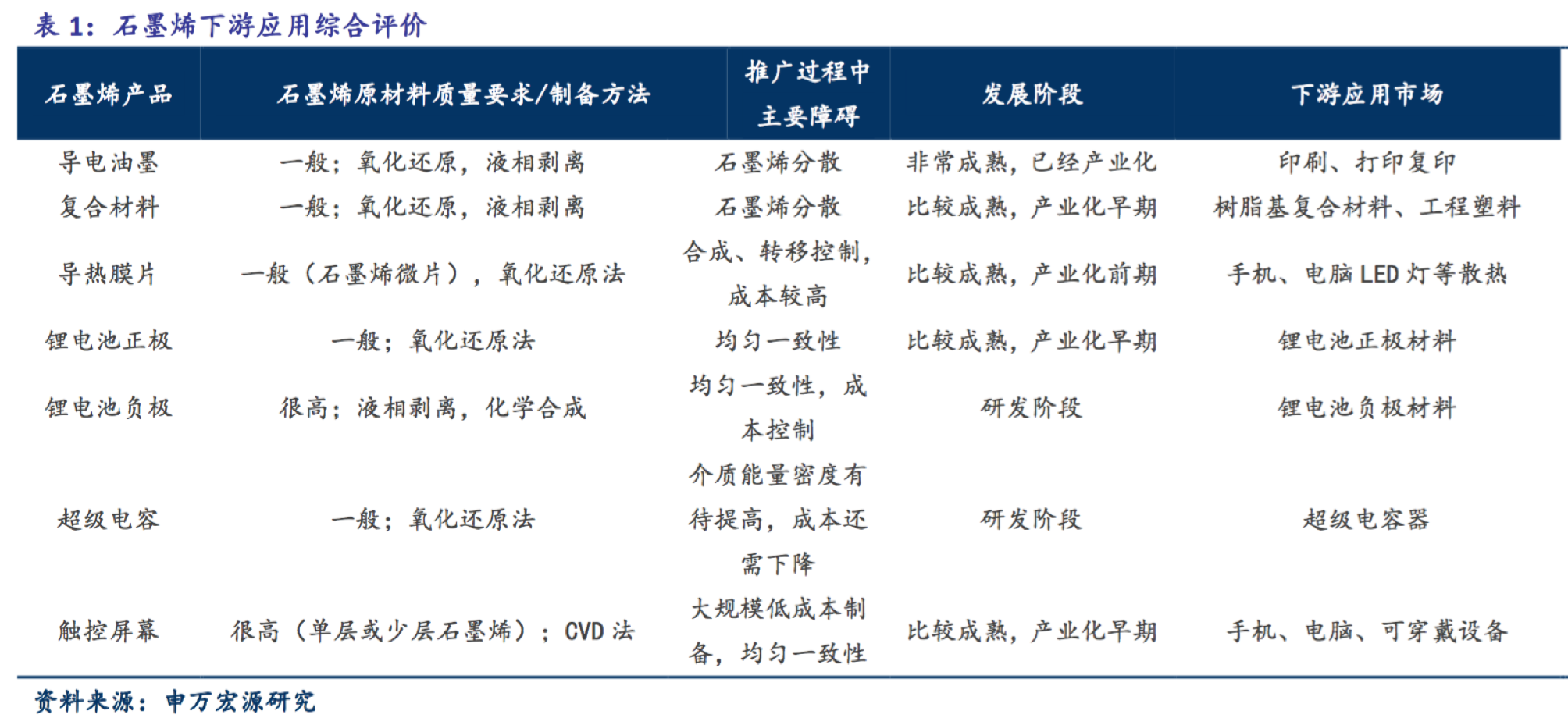 类似于导电添加剂、触摸屏、导热膜等应用已经有批量应用,相关公司收入都已超过千万级别且还在快速提升(部分公司甚至靠销售石墨烯产品已然能够产生利润)。石墨烯有望在未来一至两年内进入产业化阶段,代表性标志比如石墨烯企业收入超过亿元、明星企业开始大量采用石墨烯产品。