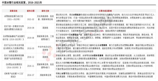 中国政府出台一系列指导冰雪装备、冰雪体育、冰雪旅游行业发展的政策,为中国冰雪行业的全面快速发展提供助力。
