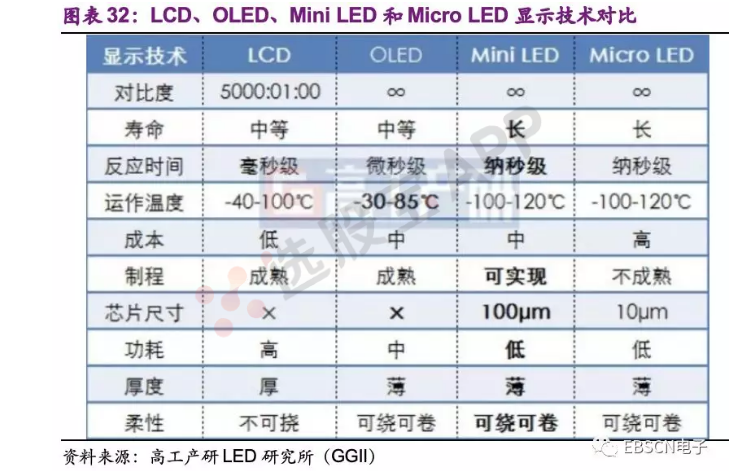 (1)Micro LED功耗比OLED也要低50%。对于智能手机等续航时间要求高的电子产品,这个优势非常有价值。