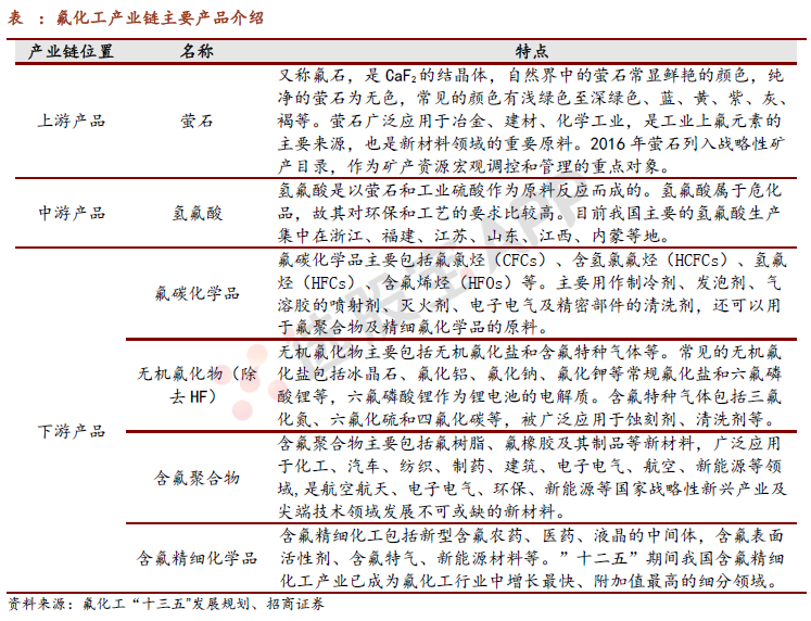 氟化工是化工行业的一个子分支,氟化工产品和材料品种多,性能优异,广泛应用于汽车、轨道交通、制冷、国防军工、航空航天、电子信息、新能源、船舶及海洋工程、环保产业等工业部门和高新技术领域。氟化工是化工这个传统领域内发展速度最快、最具高新技术和最有前景的新兴行业之一。