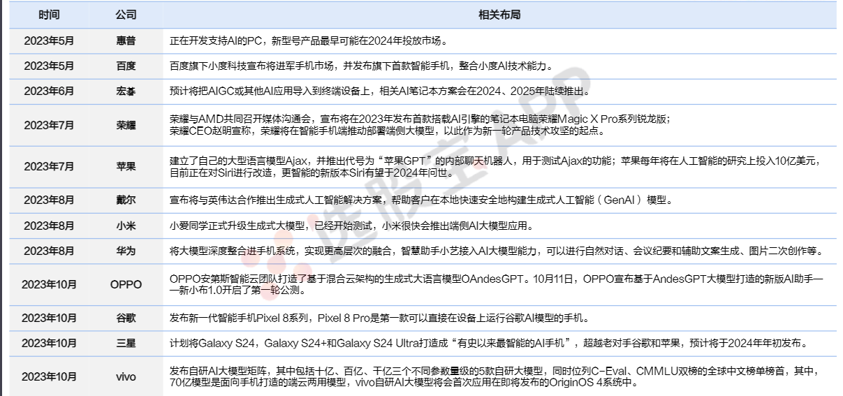 硬件组件与软件开发:AI手机还需要传感器、内存、存储、屏幕等硬件组件,以及操作系统和应用程序的支持。这些组件和软件的制造商与开发者共同构建了AI手机的产业链。